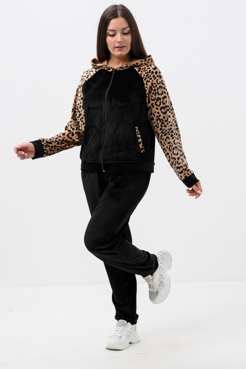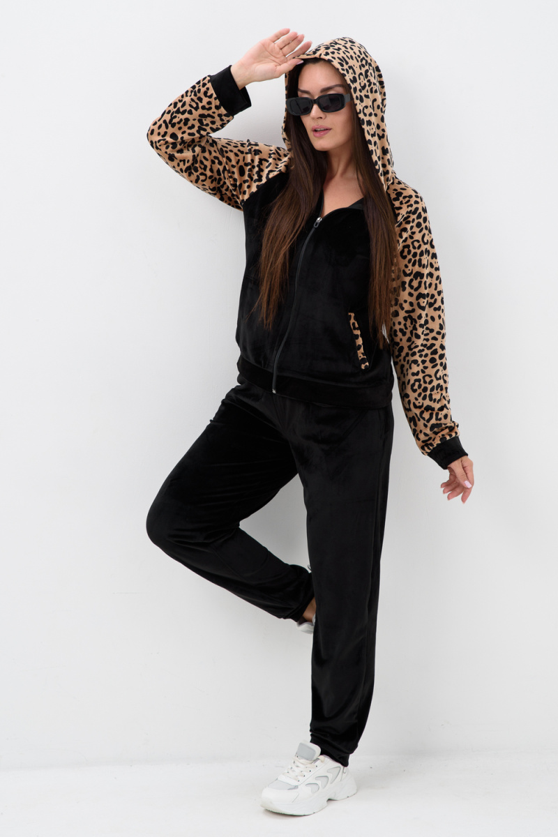 Женский костюм выполнен из мягкой и приятной ткани, кофта на молнии с длинным рукавом на манжете и капюшоном, чтобы укрыться от прохладной погоды, также имеются карманы, брюки на манжете, пояс на резинке, с карманами. Двойка хорошо подойдет как домашний костюм, в нем уютно и комфортно, также подойдет и для прогулки, в нем не холодно и не сковывает движения, можно дополнить жилеткой и головным убором, прекрасный выбор для вашего гардероба.