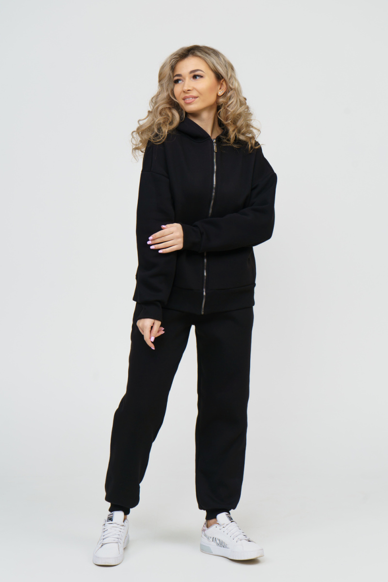 Модный женский костюм выполнен из качественного футера 3-нитки с начёсом, который обладает необыкновенной мягкостью, натуральностью, гипоаллергенностью и формоустойчивостью (при правильном уходе и стирке 30-40 °С), и обеспечивает максимальное удобство и комфорт при носке. Костюм состоит из современной "zip hoodi" свободного силуэта, которую дополняет: рукав с актуальной сейчас спущенной линией плеча, удобные карманы кенгуру и манжеты. Молния выполнена из качественных пластиковых зубьев закрепленных на прочной тесьме со стойким металлическим напылением, что обеспечивает плавное скольжение бегунка. А также удобные брюки, которые дополнены вместительными боковыми карманами, поясом выполненным на специализированной поясной машине и манжетами выполненными из качественного кашкорсе. Длина рукава указана от точки основания шеи.