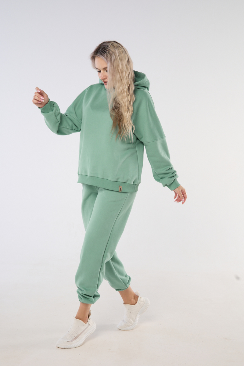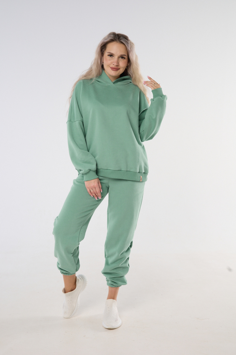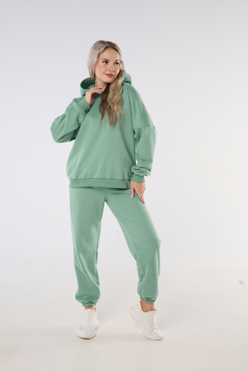 Особенностью данного костюма является наличие несъемного капюшона, который добавляет дополнительный уровень защиты от холода и ветра. Брюки в стиле джоггеры и толстовка без карманов создают стильный и современный образ, а однотонный рисунок позволяет легко сочетать костюм с другими элементами гардероба. Флисовое утепление и футерная фактура материала обеспечивают тепло и комфорт, даже в холодную погоду.